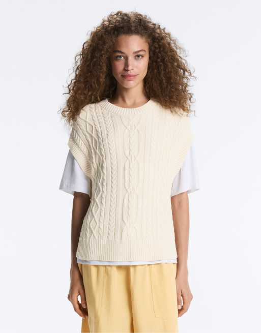 OYSHO Cable knit round neck vest in ecru