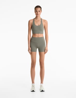 OYSHO Comfortlux high-rise 10cm hot pants in mid khaki