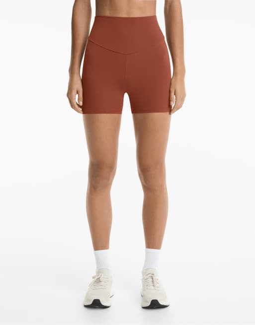 OYSHO Comfortlux high-rise 10cm hot pants in terracotta