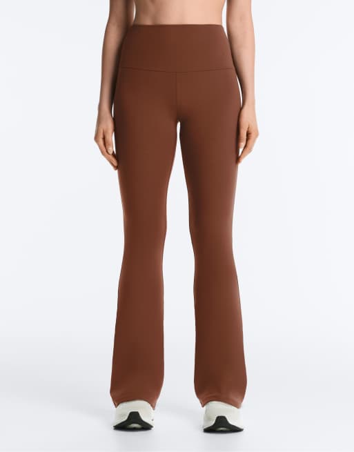 OYSHO Comfortlux high-rise flare trousers in coffee