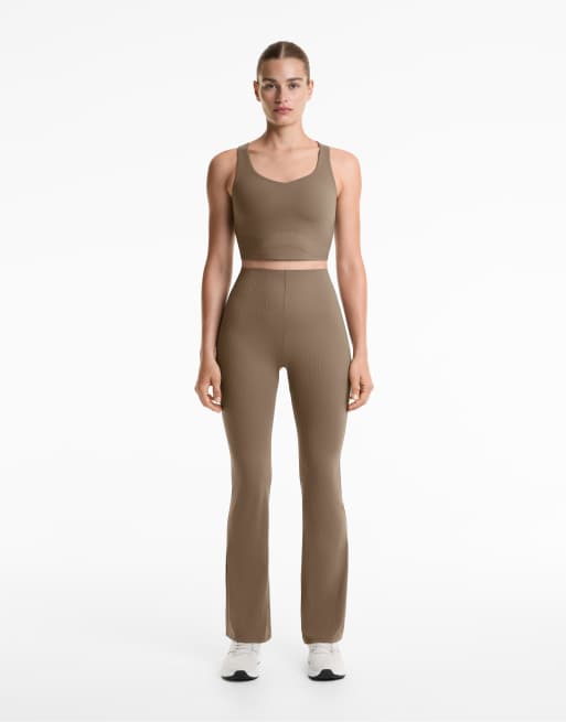 OYSHO Compressive core control high rise stripe block flare trousers in mocha