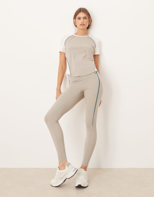 OYSHO Compressive core control lines high rise 65cm ankle-length leggings in mink