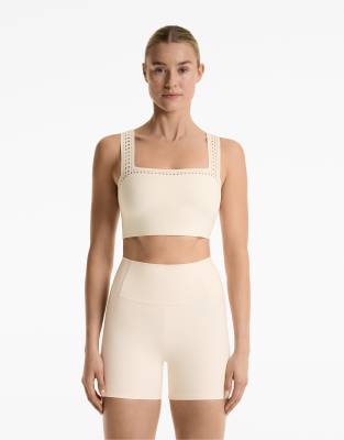 OYSHO Compressive cutwork tank top in pale ecru