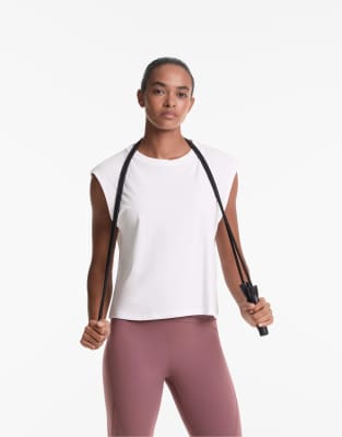 OYSHO cotton blend sleeveless seamless t-shirt in white