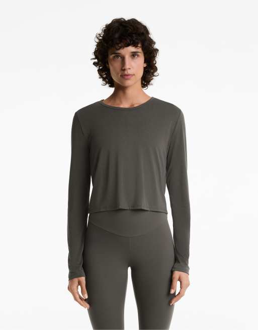 OYSHO Crossover back crop t-shirt with modal in antracita