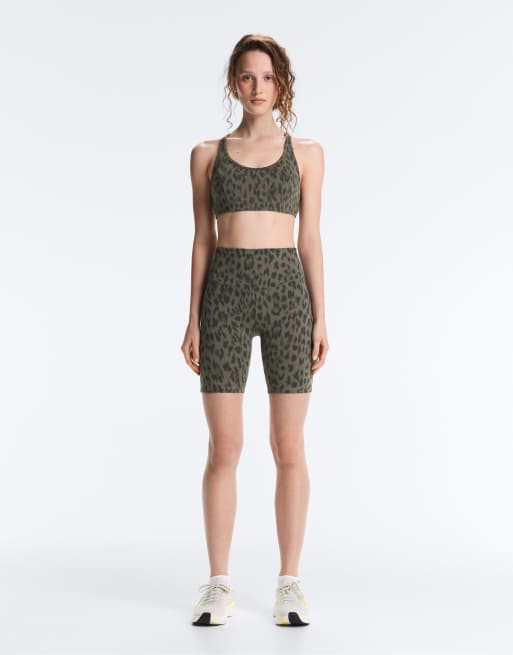 OYSHO Evermove high-rise 20cm leopard print shorts in dark khaki