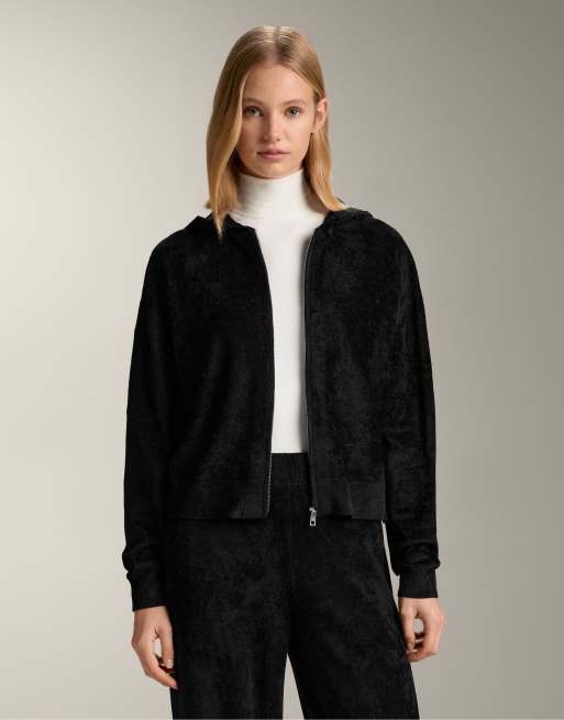 OYSHO Fine chenille hooded jacket in black