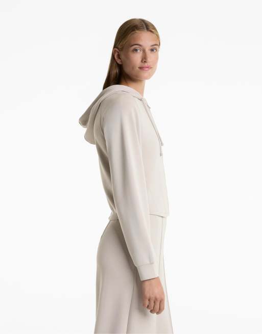 OYSHO Fitted crop hoodie with soft-touch modal in taupe