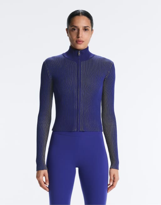 OYSHO Fitted rib-knit jacket in cobalt
