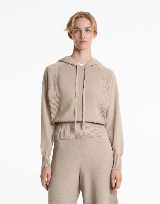 OYSHO Fitted waist rib hoodie in soft mink