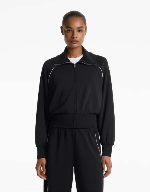 OYSHO High-collar piping jacket with soft-touch modal in black