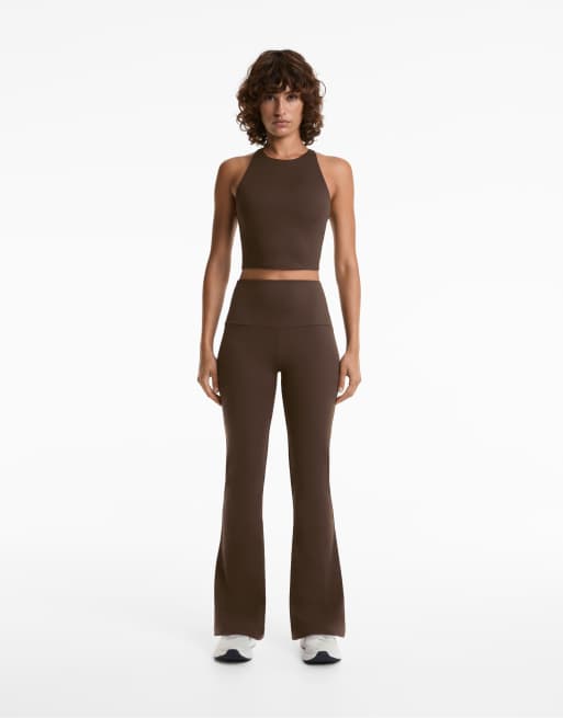 OYSHO High-rise comfortlux flare trousers in dark brown