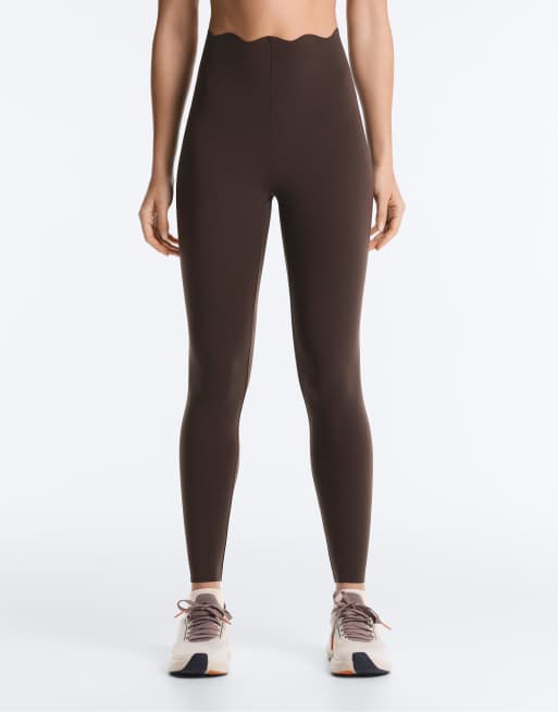 OYSHO High-rise compressive core control ankle-length leggings with wave detail in brown