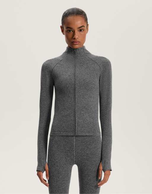 OYSHO Light warm seamless technical jacket in dark-grey melange