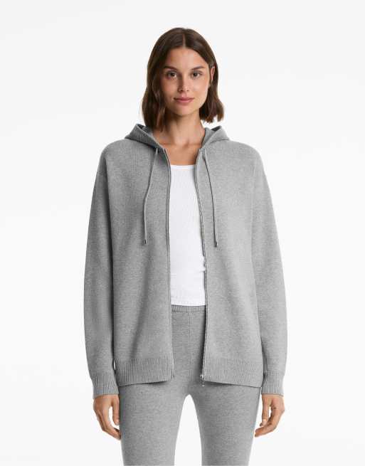 OYSHO Long knit jacket with hood in black