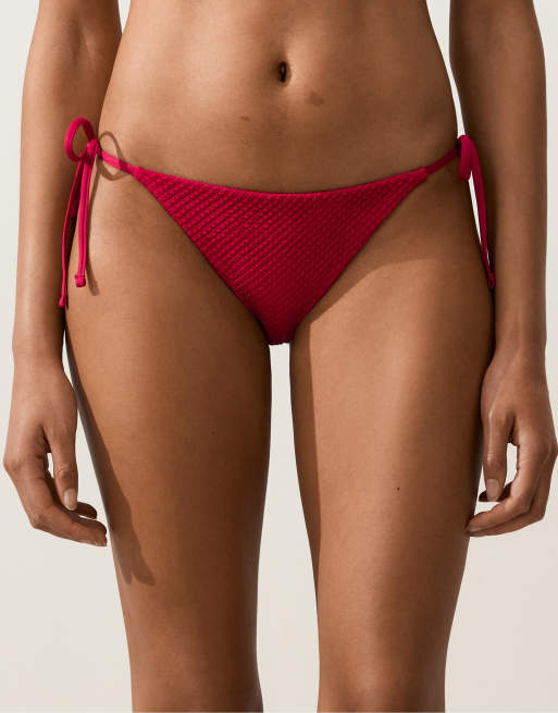 OYSHO Medium-coverage waffle bikini briefs with ties in bright red