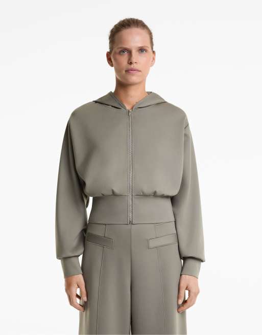 OYSHO Neoprene-effect jacket with hood in green