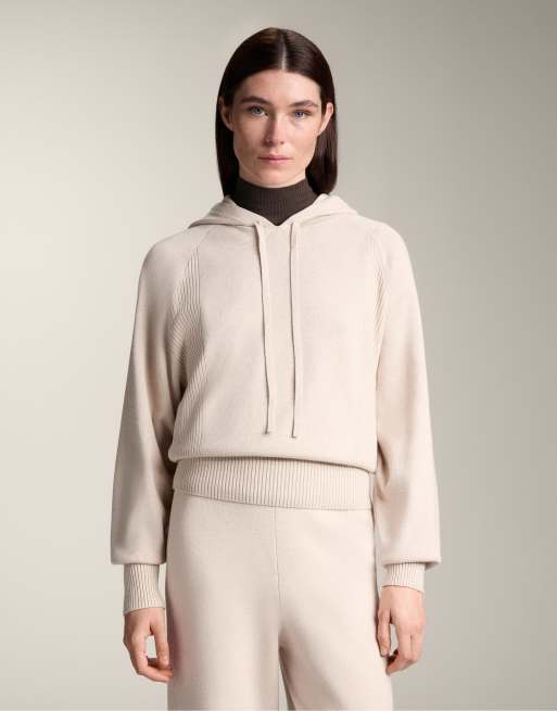 OYSHO Rib jumper with drawstring hood and fitted waist in grey