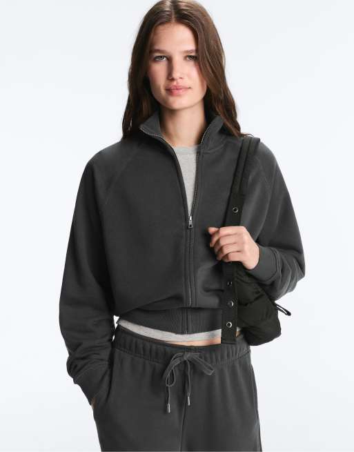 OYSHO Round neck plush jacket in dark anthracite