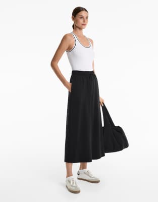 OYSHO Soft-touch wide-leg crop trousers with modal in black