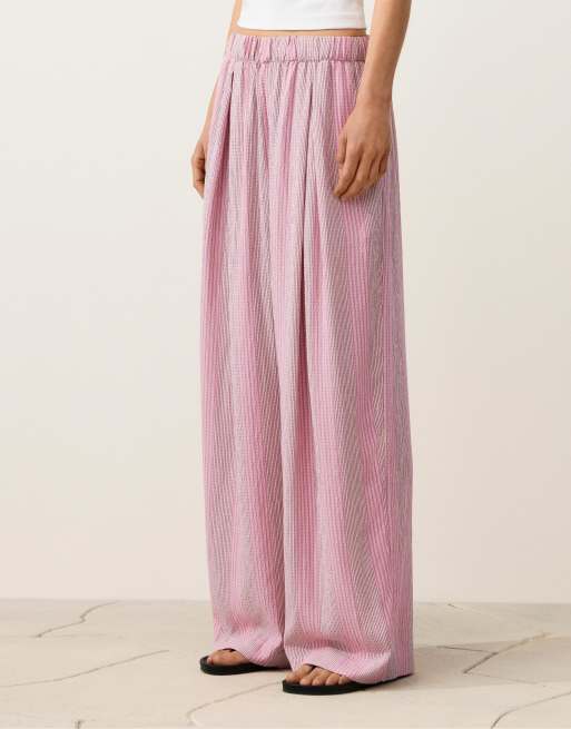 OYSHO Straight-leg striped trousers in pink