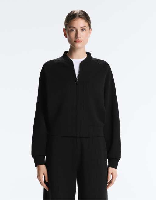 OYSHO Striped bomber jacket with soft-touch modal in black