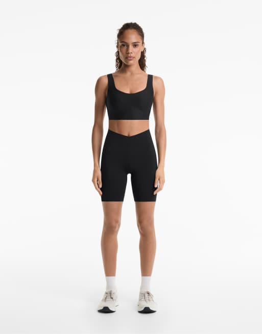OYSHO V-cut light touch high rise 20cm biker leggings in black