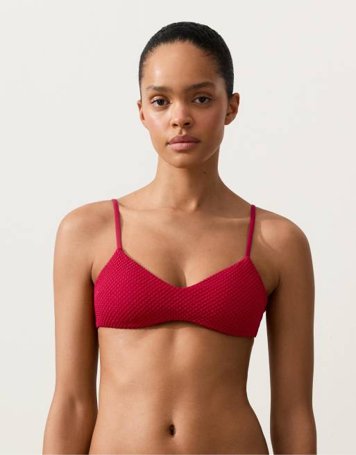 OYSHO Waffle texture triangle bikini top in bright red