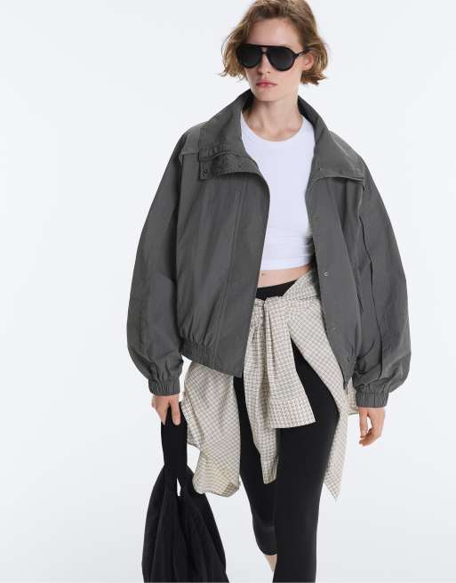 OYSHO Waterrepellent short track jacket with high neck in grey