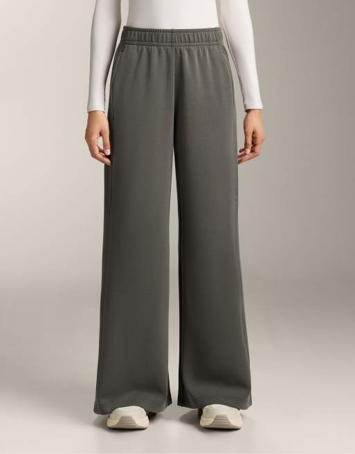 OYSHO Wide-leg straight trousers with side rib and brushed modal in dark grey
