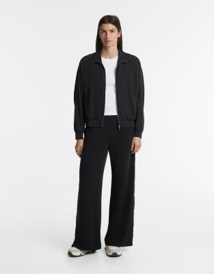 OYSHO Wide-leg straight trousers with soft-touch modal and buttons in black