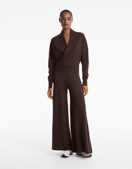 OYSHO Wide straight-leg knit trousers in brown
