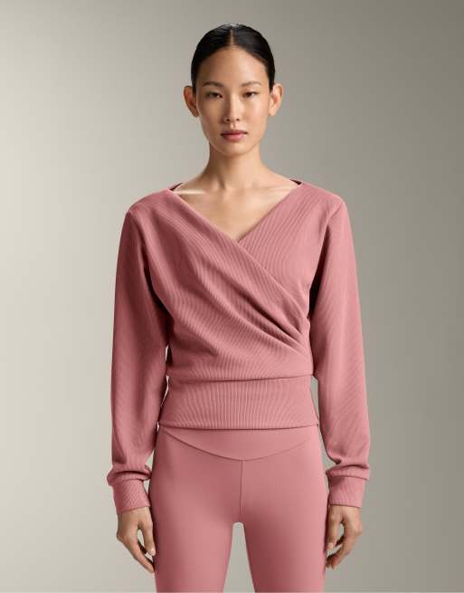 OYSHO Wrap rib brushed modal sweatshirt in pale pink