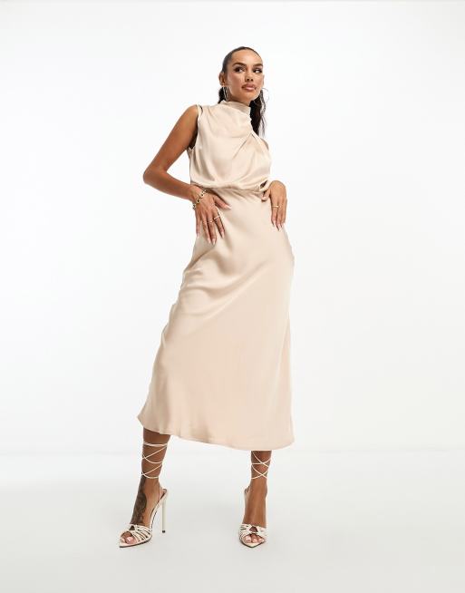 Parallel Lines high neck satin maxi dress in champagne