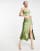 Parallel Lines satin tie back crop top and midi skirt with split in khaki