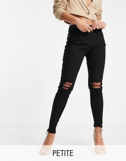 Parisian Petite skinny jeans with ripped knee in black