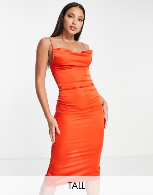Parisian Tall satin cami strap mini dress with cowl neck in bright orange
