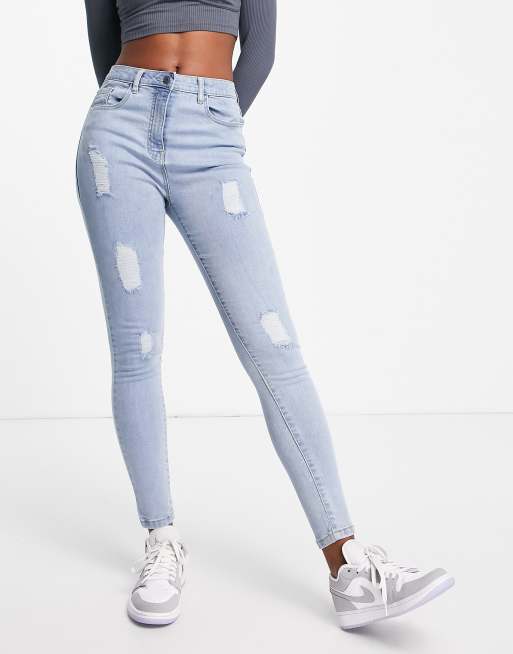 Parisian distressed skinny jeans in light blue