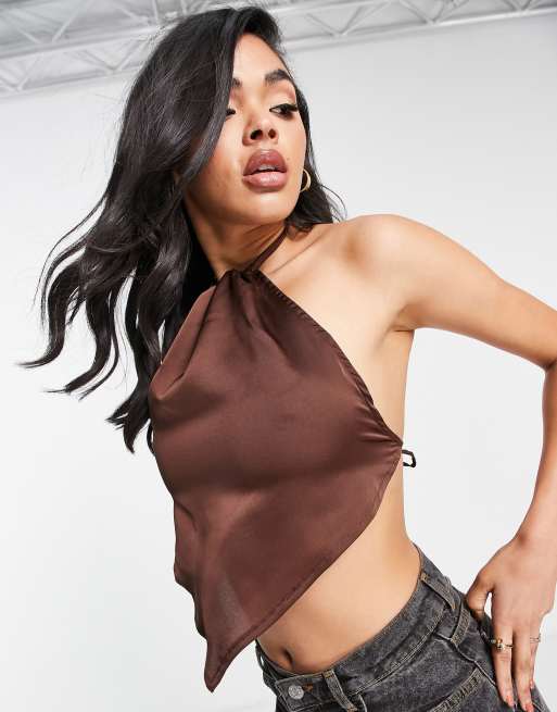 Parisian satin halter neck top co-ord in chocolate brown