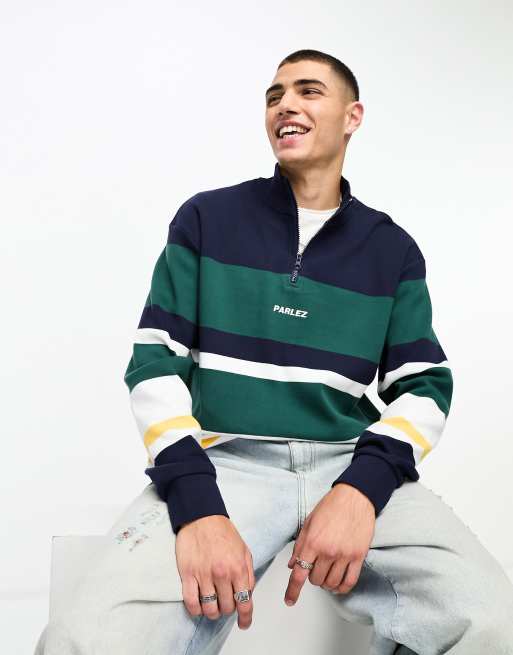 Parlez irvine striped half zip sweat in navy