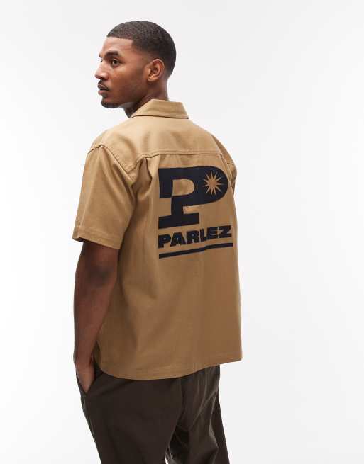 Parlez jack short sleeve back print shirt in beige