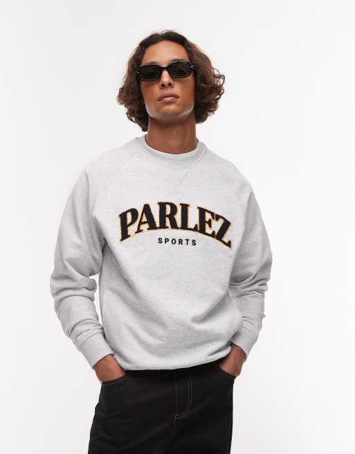 Parlez varsity towelling logo crew neck sweat top in grey