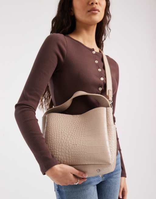 PASQ grab bucket bag with crossbody strap in beige croc