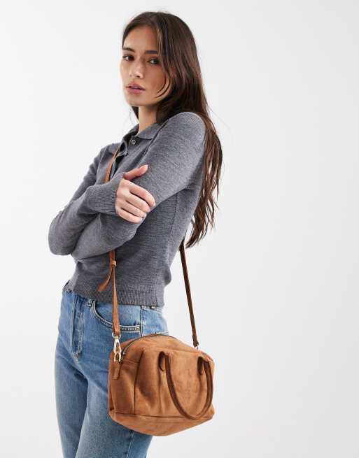 PASQ small suede bowling bag with crossbody strap in tan