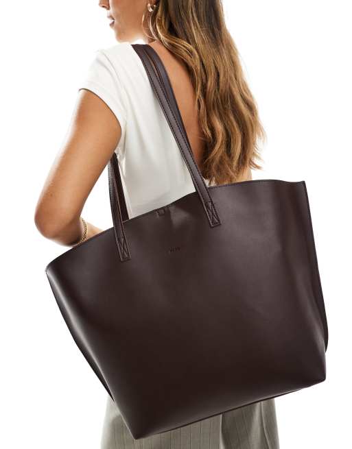 PASQ winged tote bag with inside pouch in dark brown