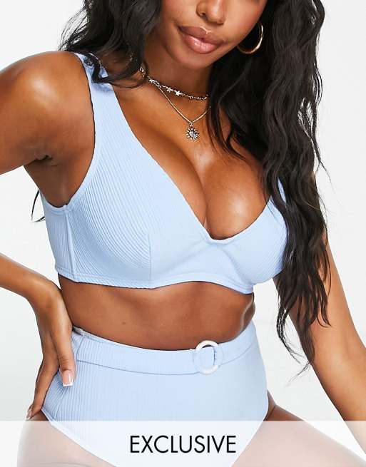 Peek & Beau Fuller Bust Exclusive crop bikini top in blue rib