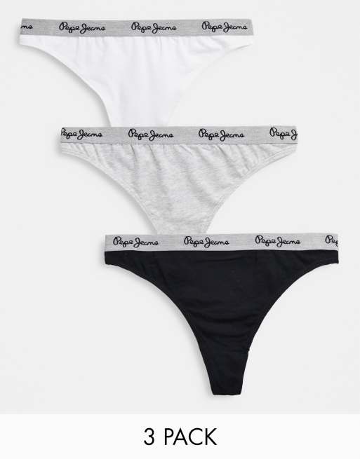 Pepe Jeans amy 3 pack thong in black grey and white