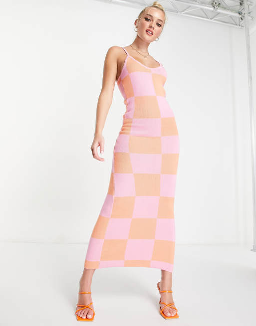 Peppermayo knitted maxi dress in coral check