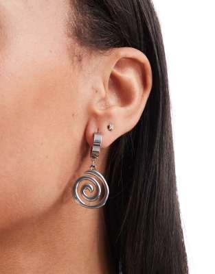 Petit Moments jude stainless steel huggie hoop earrings with spiral pendant in silver