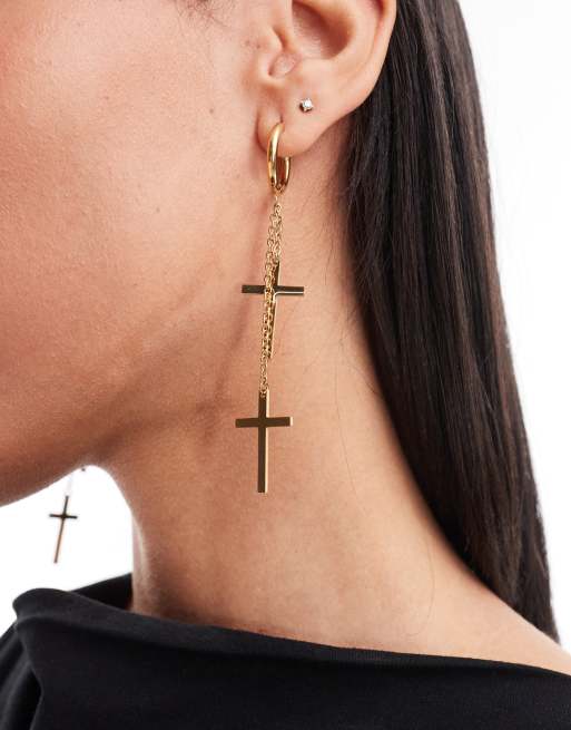 Petit Moments santana stainless steel long cross hoop earrings in gold